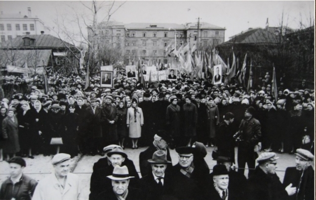 Митинг по поводу начала строительства здания Ленинского мемориального центра. Ульяновск, 22 апреля 1967 г. Фото. Автор М.А. Травина: