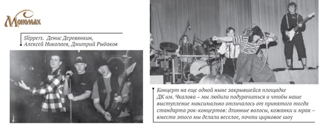 Первое выступление не в качестве заводского ВИА, а уже как группы «Слипперс» с набором яростных англоязычных композиций состоялось осенью 1994 года в ДК 1 Мая. Это был сборный концерт, так сказать, смотр сил существовавшего тогда у нас в городе (представьте себе!) официального рок-клуба. Публика приняла очень тепло, даже горячо, а вот музыкальная тусовка – не особо. Тогда были сильны два направления: традиционный металл во главе с могучей «Ямой» и тяжеляк с группой «Морбид» впереди. Мы не были ни с теми, ни с другими. Вообще, наверное, это было то самое, что выделяло «Слипперс» – четкое нежелание быть похожими на кого-то.