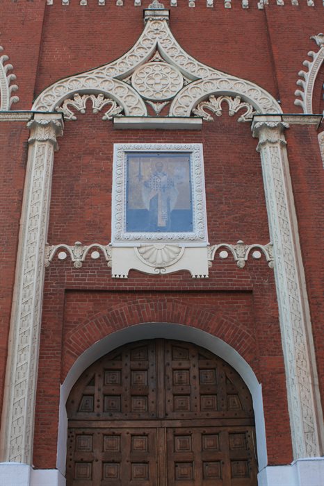 Надвратная икона Николы Можайского. Никольская башня Кремля. Начало Никольской улицы: