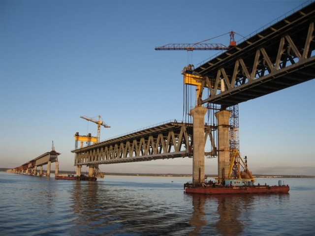 Строительство Президентского моста через Волгу. 2008. Фото А. Лубкова: