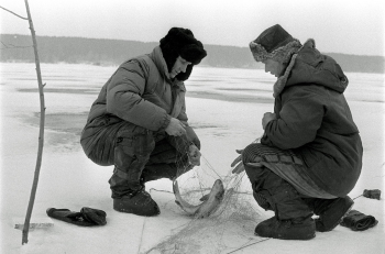 Вспоминая уходящий 1999-й год. Старомайнский рыбхоз, зимняя рыбалка в заливе. Волга.