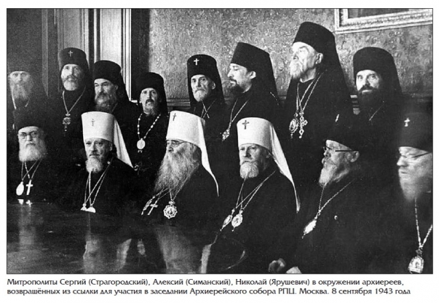 Только в 1937 году было расстреляно более 50 епископов. На своих кафедрах с сохранением регистрации уцелели лишь два митрополита – Московский и Коломенский Сергий (Страгородский) и Ленинградский Алексий (Симанский), неоднократно подвергавшиеся арестам. Причём в 1938 году Сергий был упомянут в газетах в списках «шпионов и диверсантов», и только он сохранил пишущую машинку, именную печать и канцелярию, а митрополит Алексий был лишён этого и шесть лет вёл делопроизводство от руки.