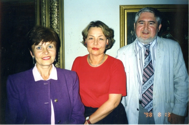Татьяна Громова, выдающийся краевед, Вероника Жобер, профессор Сорбонны (Франция), Сергей Петров. 1998 г., август. Музей Симбирской мужской гимназии: