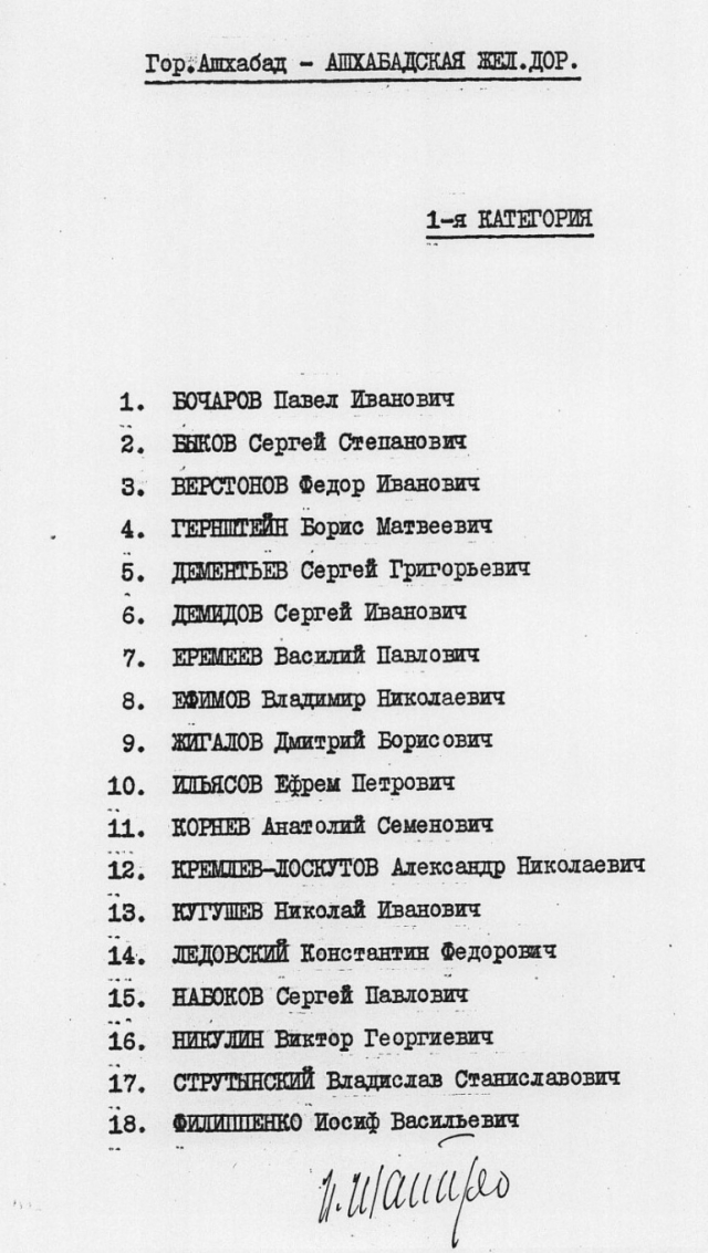 Список подлежащих расстрелу по Ашхабадскому делу. Бывший секретарь Ульяновского губокома Ф. Верстонов-третий в списке: