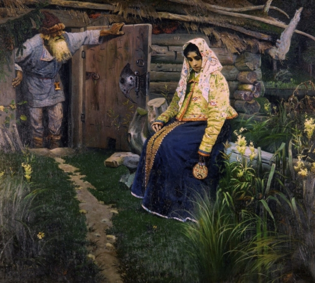 Русские художники-передвижники, жившие в XIX веке, стремились запечатлеть на своих полотнах «правду» окружавшей их обыденной жизни. Среди характерных и очень известных полотен, вышедших из-под их кистей – написанная в 1875 году картина художника Василия Максимова «Приход колдуна на крестьянскую свадьбу» (представлена ниже). Веселье насмарку, парень с балалайкой отступает в сторону. Гостю не рады, но подносят хлеб с солью. Молодые встали, как для благословения, хотя сюртук с пуговицами подчёркивает «просвещённый» статус жениха, писаря ли, телеграфиста, и рядом – священник, явно призывающий не верить в колдовство, но его аргументы, чувствуется, звучат не слишком убедительно…