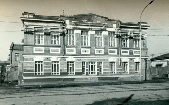 Бывшее Лебедевское училище, Радищева, 39. Снимок 1980-х годов. На фасаде видны ныне утраченные лепные украшения в виде львиных голов: