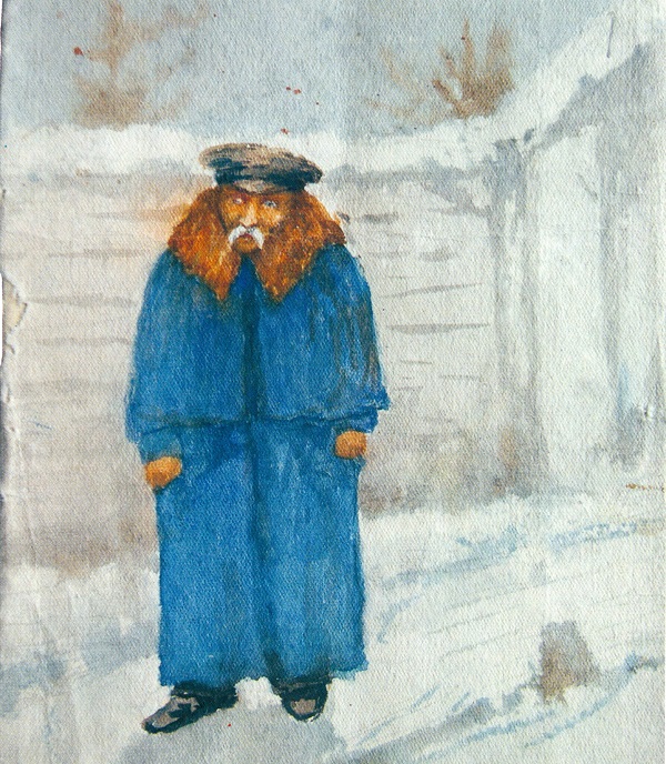 Михаил Лебедев в зимнем наряде. Рисунок середины 20 века: