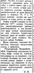 Среди безработных преобладают канцелярские служащие (20%) и чернорабочие (18%); процент безработных производственных групп гораздо меньший. В июле мес., в связи с начавшимися полевыми работами, число безработных чернорабочих резко уменьшилось: крестьянский элемент возвращается к своим хозяйствам; большая же часть безработных чернорабочих направляется в деревню на заработки.