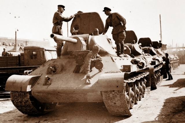 Танкисты Сталинградского учебного бронетанкового центра принимают новые танки на площадке Сталинградского тракторного завода. 1942 год: