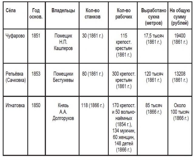 Учитывая, что Чуфаровская и Репьёвская фабрики просуществовали довольно непродолжительное время и, не выдержав конкуренции, вскоре вынуждены были закрыться, кратко расскажем об Игнатовской фабрике, история которой насчитывает 160 лет.