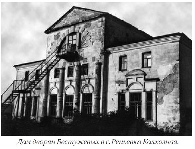 Сохранились многие каменные постройки усадьбы богатейших дворян Бестужевых в селе Репьёвка Колхозная: двухэтажный господский дом с полуколоннами и мезонином, хозяйственные службы, кирпичная ограда, фруктовый сад и липовый парк. Усадебный комплекс выстроен в конце 18 – начале 19 веков. В 1890-х годах сын симбирского купца А.Д. Сачкова Александр обновил имение: в доме появились мраморные лестницы, дубовые паркетные полы, вызолоченные лепные украшения, модная мебель, а в старинном парке было высажено много сосен. Позднее здесь разместили специнтернат для престарелых и инвалидов. С недавних пор господский дом из-за ветхости законсервировали, а строители подсчитали, что строительство на его месте нового корпуса обойдётся дешевле реставрации этого историко-архитектурного памятника.