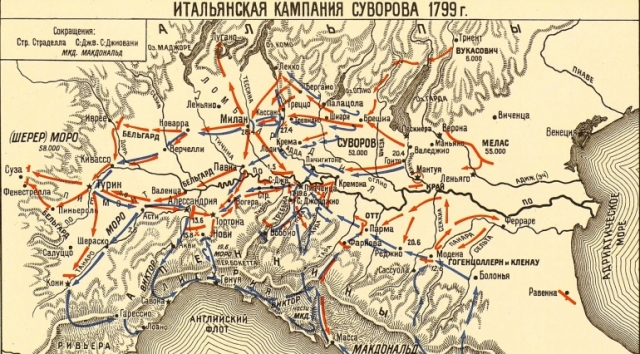 Карта Итальянского похода Суворова в 1799 году: