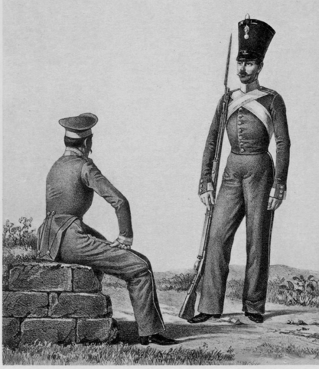 Унтер-офицер и рядовой гарнизонного батальона в XIX веке: