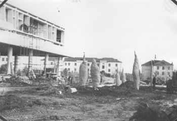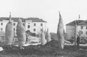 Запакованные голубые ели у стен Мемориала