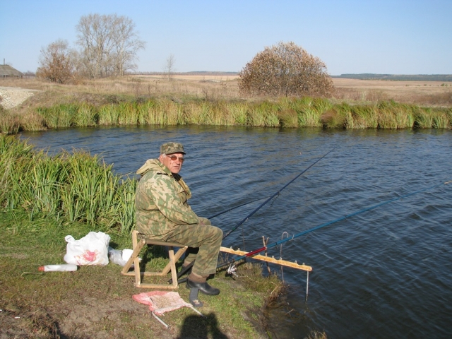 Игорь Дмитриевич Лычкин на рыбалке на пруду в Беклемишево: