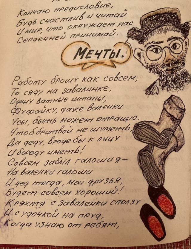 Свои стихи Игорь Дмитриевич записывал в блокнот и иллюстрировал собственными рисунками – это одна из страниц: