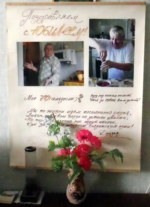 Но празднование удалось – все товарищи с другого берега смогли собраться, поздравили его стихами и песней. Художник Петр Никитенко подарил юбиляру свою картину, на ней нарисованы те цветы, которые любил Юрий Тишкин.