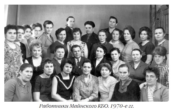 КБО. Майнский комбинат бытового обслуживания населения открылся в 1965 году в двухэтажном здании в центре посёлка. Больших успехов его коллектив добивался при директоре А.И. Рябинове: не раз становился победителем областного соревнования по отрасли, награждался переходящим Красным знаменем и денежными премиями, многие передовики становились чемпионами труда района, заносились на районную и областную Доски почёта.