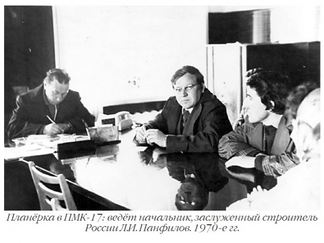 Производственные успехи ПМК-17 во многом были связаны с умелым руководством ею опытнейшего специалиста Л.И. Панфилова (1937-1997), проработавшего здесь с 1967 года до ухода на пенсию в 1994 году. Трудно даже перечислить те объекты, которые были при нём построены в районе. Далеко не случайно его наградили орденом «Знак Почёта», медалями и удостоили почётного звания «Заслуженный строитель РСФСР».