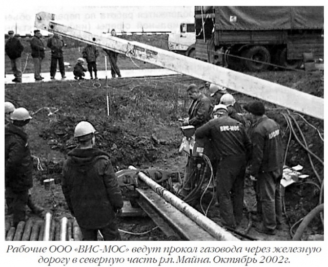 В Майне масштабная и долгожданная газификация началась в 1997 году, в её центральной части. Силами совместного российско-германского предприятия «ВИС-МОС» (генеральный директор - А.А. Майер) в конце октября 2002 года газопровод в райцентре «перешагнул» железнодорожные пути. Опытные буровики этой уникальной в мире фирмы сделали прокол под полотном дороги, проложили через него многометровую трубу и отсюда природный газ пошёл на северо-западную части посёлка, где находятся основные промышленные предприятия и многие жилые дома.