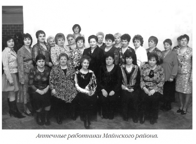 Майнская аптека № 11, одна из первых сельских аптек в области, открылась в 1931 году в деревянном здании на улице Советской (ныне на её месте – многопрофильный лицей). В войну и после неё коллектив из 6 человек возглавляла М.Г. Исаева, затем – А.А. Чунина. Почти 23 года заведовала аптечным коллективом опытный фармацевт Т.М. Желтова. При ней в августе 1970 года учреждение получило статус Центральной районной аптеки с подчинением ей всей сети сельских аптек и аптечных пунктов, расположенных в районе, расширился штат работников, а в апреле 1973 года коллектив переехал в новое прекрасное здание по улице Ленинской, 13.