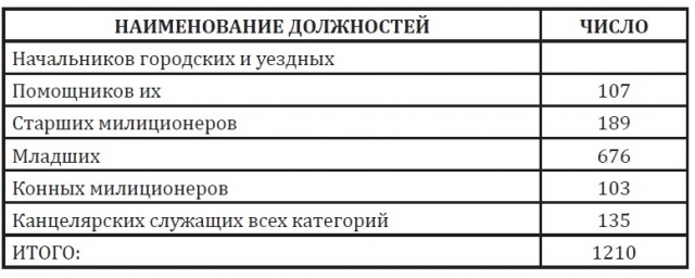 Здесь же приводился общий численный состав милиции по каждому уезду: