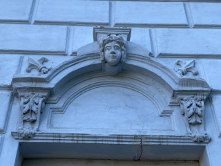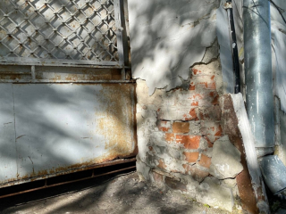 В некоторых местах знаково — например, прямо над табличкой «Международная кафедра ЮНЕСКО»). Похоже, что и барельеф в некоторых местах держится буквально на честном слове.