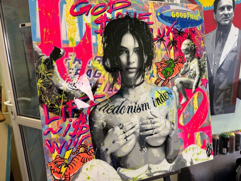 Что касается поп-арта - жанра, зародившегося в Америке в 60-е годы, он отражал современную ему действительность: США отошли от мировой войны, началось мирное существование, появилось множество брендов, развивались музыка и кинематограф. И поп-арт стал реакцией на стиль массового потребления американцев. Затем он начал эволюционировать. Мой жанр называют нео-поп-арт – на моих работах появляются персонажи текущей действительности.