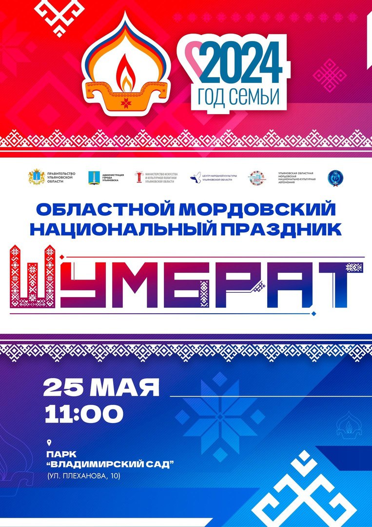 В Ульяновске 25 мая пройдут День дружбы народов и национальный мордовский праздник «Шумбрат». Оба мероприятия состоятся в парке «Владимирский сад». Начало в 11:00, сообщают в региональном правительстве.