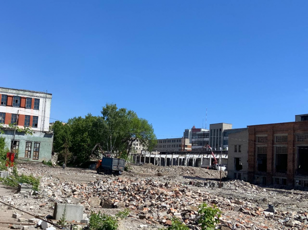 На улице Карла Маркса рабочие сносят сооружения на территории бывшего завода «Контактор». В мэрии не смогли объяснить, для чего проводятся работы, поскольку это частная территория. Корпуса и участок здесь еще в 2022 году выкупила столичная компания, планирующая реновацию, но планы по одной из старейших промышленных площадок города фирма так и не озвучила.
