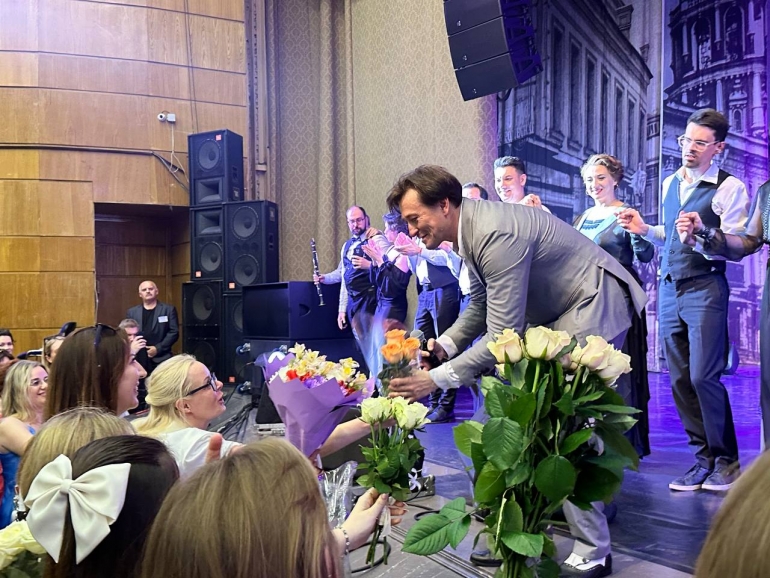 Всё это время артисту то и дело подносили охапку билетов и бумажек для автографов. Кто-то даже принес книгу «Бригада».