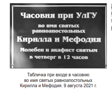 23. Часовня святых равноапостольных Кирилла и Мефодия при УлГУ // Православный Симбирск. – 2017. – 25 янв. (№ 2). – С. 6.