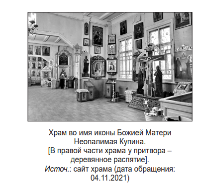 - (15) К большому сожалению, даже на сайте храма указана неправильная дата его освящения – 9 мая 1912 года[по старому стилю] (см.: http://neopalimovsky.ortox.ru/istoriya-hram-ikoni-bozhiej-materi-neopalimaya-kupina/(дата обращения: 03.11.2021).