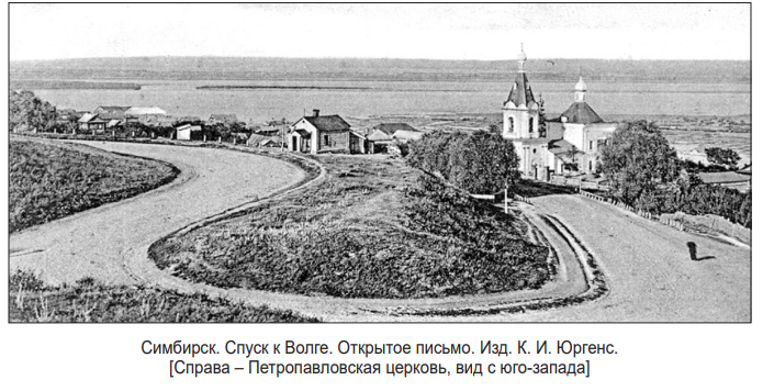 Впрочем, исследователь симбирской старины Капитон Иванович Невоструев (1816–1872)утверждал, что Пётр I (1672–1725)«…миновал Симбирск» (5). При этом также надо иметь в виду, что предполагаемое «посещение города» императором Петром I (1672–1725) обязательно бы нашло своё отражение в соответствующих документах. Но такие пока не обнаружены. А, например, в «Юрнале» 1722 г., который был «писан собственною рукою Петра Великаго», всего лишь имеется запись: «9-го (в субботу 9 [20] июня 1722 г. – В. Я.). На разсвете приехали к Синбирску, где переменя гребцов, пошли в путь…» (6).
