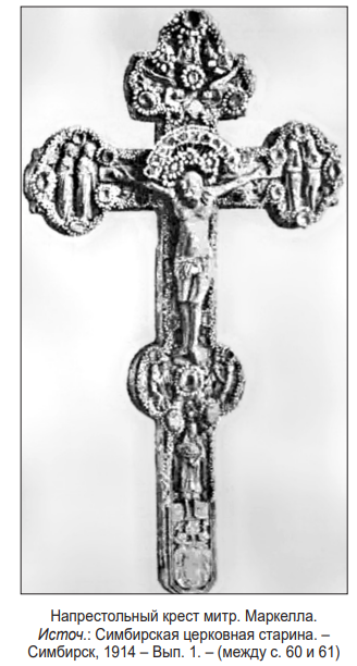По упразднении Преображенской церкви (в 1840 г. (7)) уникальная реликвия была перенесена в Николаевский кафедральный собор, в ризнице которого и хранилась несколько последующих десятилетий. Так как появление в Симбирске данного напрестольного креста сопровождалось письмом («актом») от митрополита Казанского и Свияжского (с 8 [18] сентября 1690 г. по 21 [31] августа 1698 г.) Маркелла (?–1698), то и в истории города он остался известным как «напрестольный крест митрополита Маркелла».