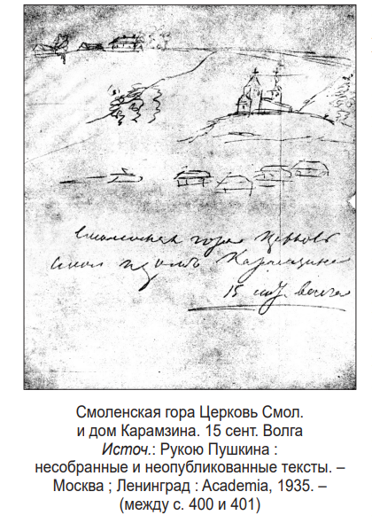 В сентябре 1833 г. облик Смоленской церкви и окружающий пейзаж были удостоены чести быть зарисованными поэтом Александром Сергеевичем Пушкиным (1799–1837) (6).