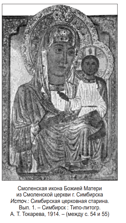 - см.: Симбирская Смоленская икона Божией Матери, находящаяся в Смоленской церкви г. Симбирска //СЕВ. – 1913. – № 7 (1 апр.). Отд. неоффиц. – (Прил., с. 1–26).