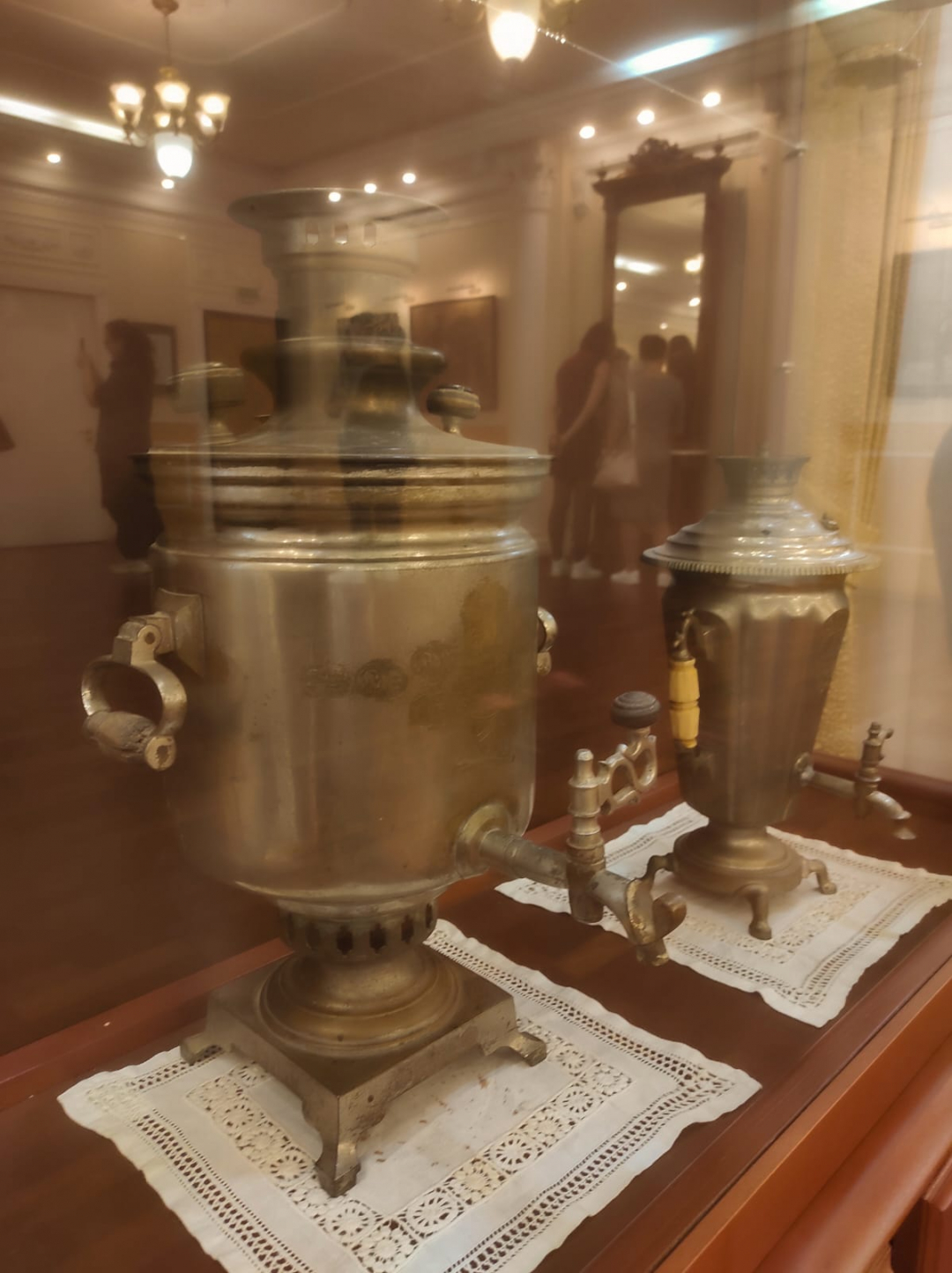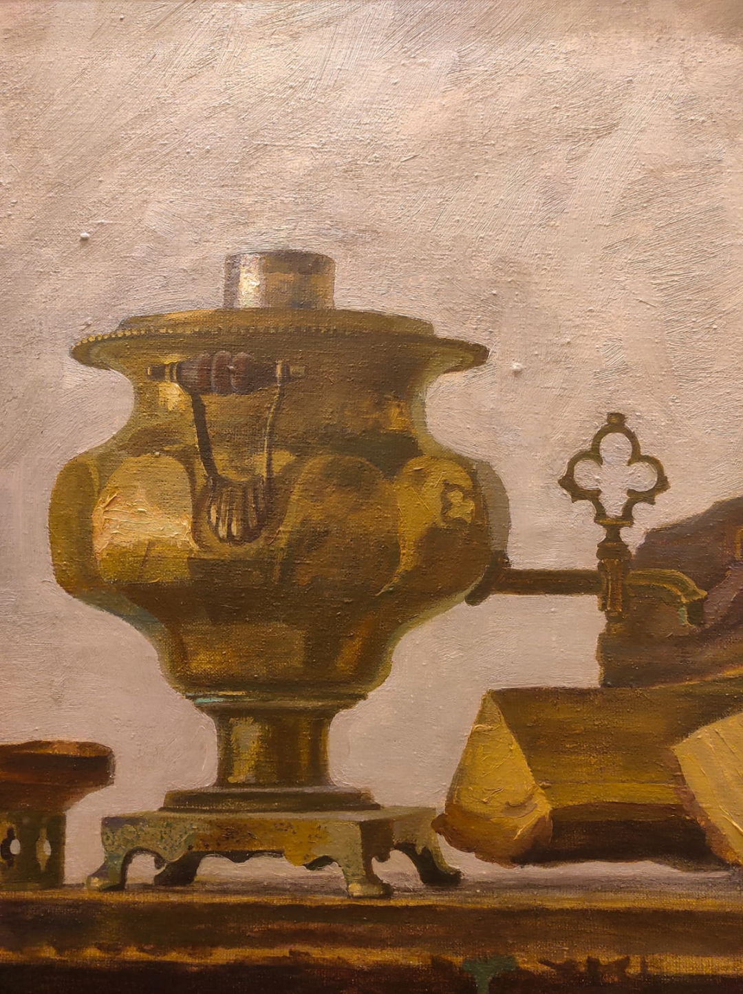 Замечательным дополнением выставки стали натюрморты известного ульяновского мастера, члена Союза художников России – Валерия Кузнецова. Его работы, представленные в зале музея, объединены изображением самоваров и пронизаны любовью к традиционной русской культуре и быту.