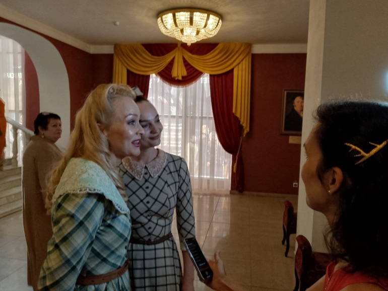 Например, к месту появляющаяся и узнаваемая музыка из фильма «Гостья из будущего». Рефреном, конечно же, «Прекрасное далёко». Или эксцентричное трио Свобода-Равенство-Братство + Капитализм, в ролях которых от души хулиганят премьер театра Николай Авдеев и народные-заслуженные Зоя Самсонова, Ирина Янко и Людмила Даньшина. А главное – здесь есть теплая и уважительная с песнями, танцами и юмором ностальгия по не так уж далеко ушедшему советскому прошлому. Как для старшего поколения, которое его ещё помнит, так и для молодых, которые думают, что всё про то время знают. И хватит спойлеров на сегодня. Впрочем, о танцах. Неожиданно, но постановка танцев в спектакле – дебют младшего поколения известной ульяновской хореографической династии Карниловых.