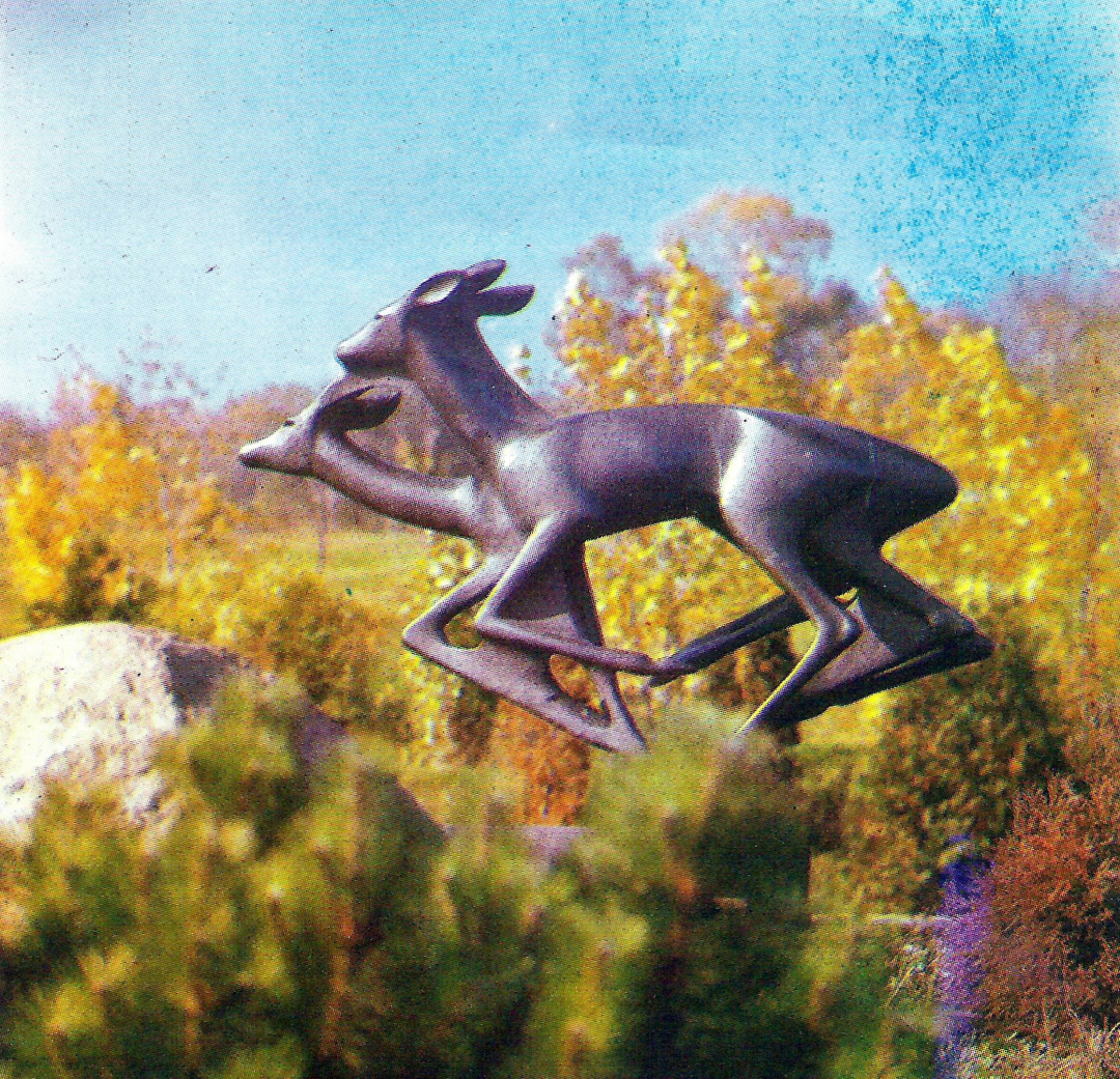 Скульптура ланей на участке Эстонской ССР в Нижнем партере. 1980-е гг. Фотограф Ю.Н. Белозёров: