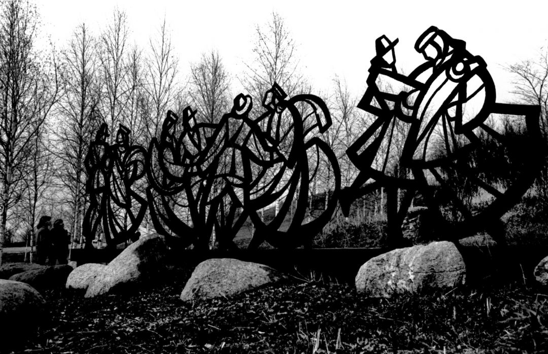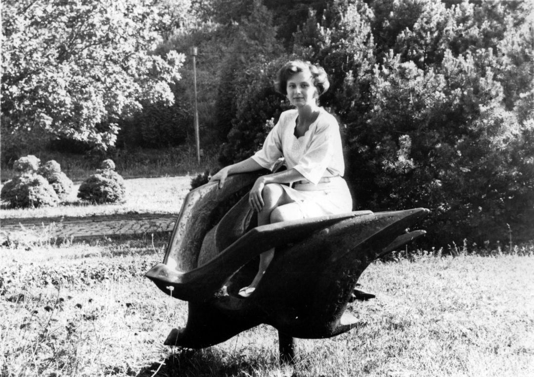 На скульптуре ласточек на участке Эстонской ССР в Верхнем партере. 16 июня 1995 г. Фотограф А.Ю. Шабалкин: