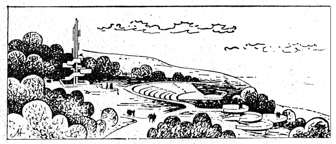 Неосуществлённый проект участка Российской СФСР. Рисунок одного из авторов проекта, архитектора Л.Н. Нецветаева. «Ульяновская правда», 28 августа 1983 г.: