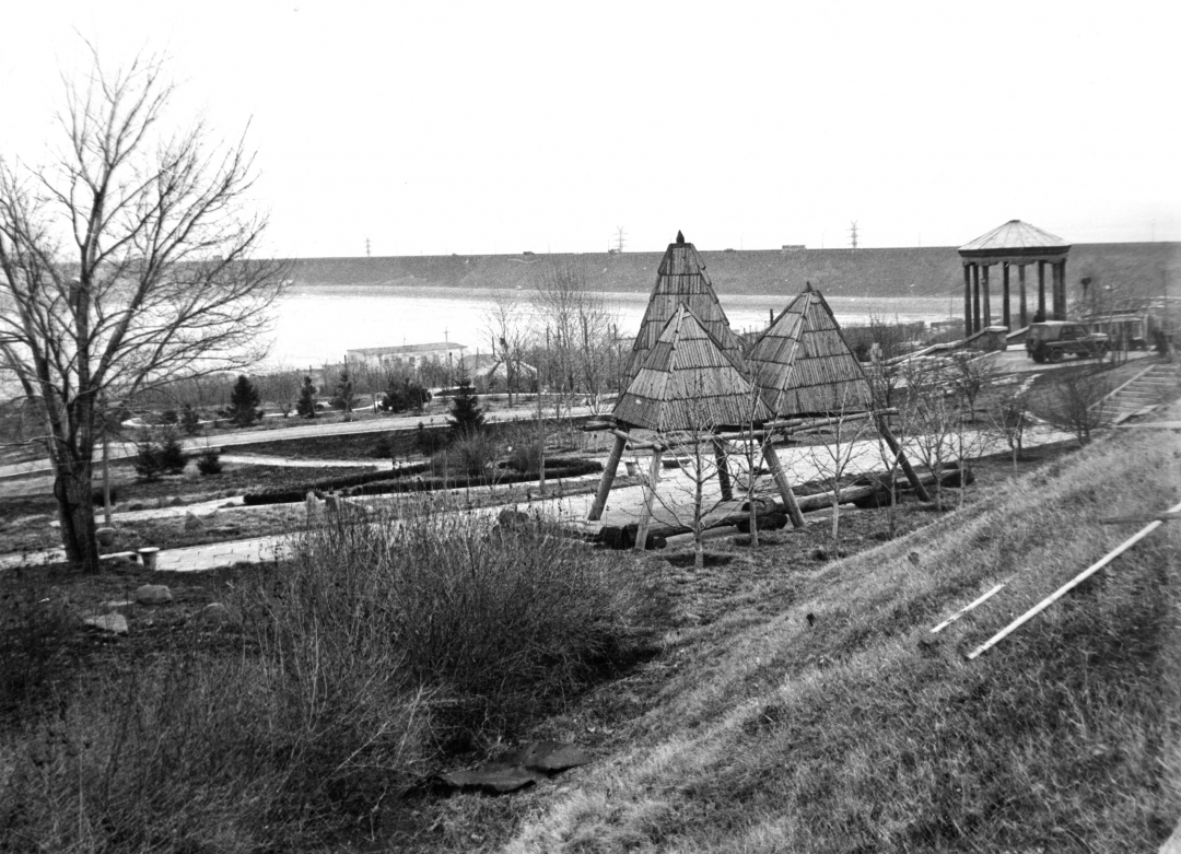Вид от участка Украинской ССР на участки Казахской и Узбекской ССР в Нижнем парке. Опубликовано в газете «Ульяновская правда», 20 апреля 1984 г. Фотограф Г.А. Зиновьев: