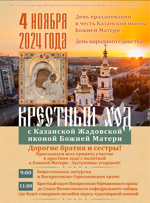 Он состоится в День народного единства, 4 ноября, сообщает Симбирская епархия.