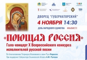 К Дню народного единства, с 31 октября по 4 ноября, в Ульяновске будет проходить X Всероссийский конкурс исполнителей русской песни «Поющая Россия».