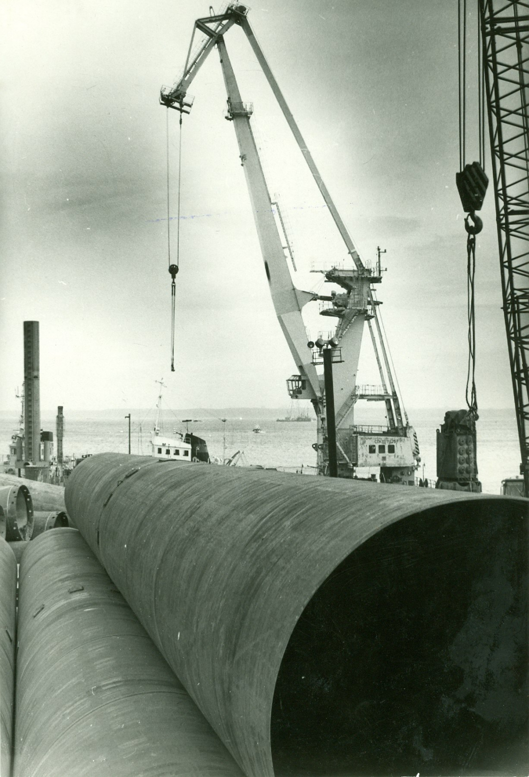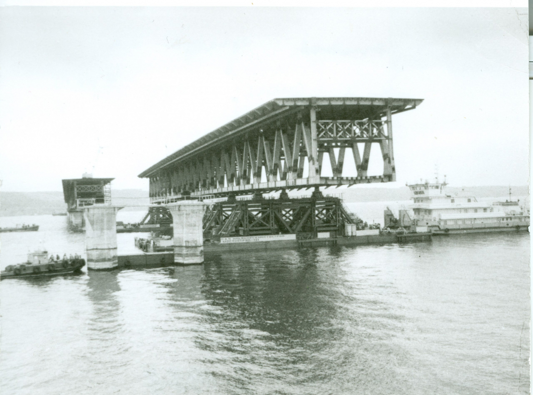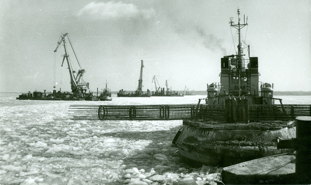 Укладка труб на строительстве моста через р. Волгу. 1996 г. ГАНИ УО Ф. 5968 Оп.1. Д. 1438
