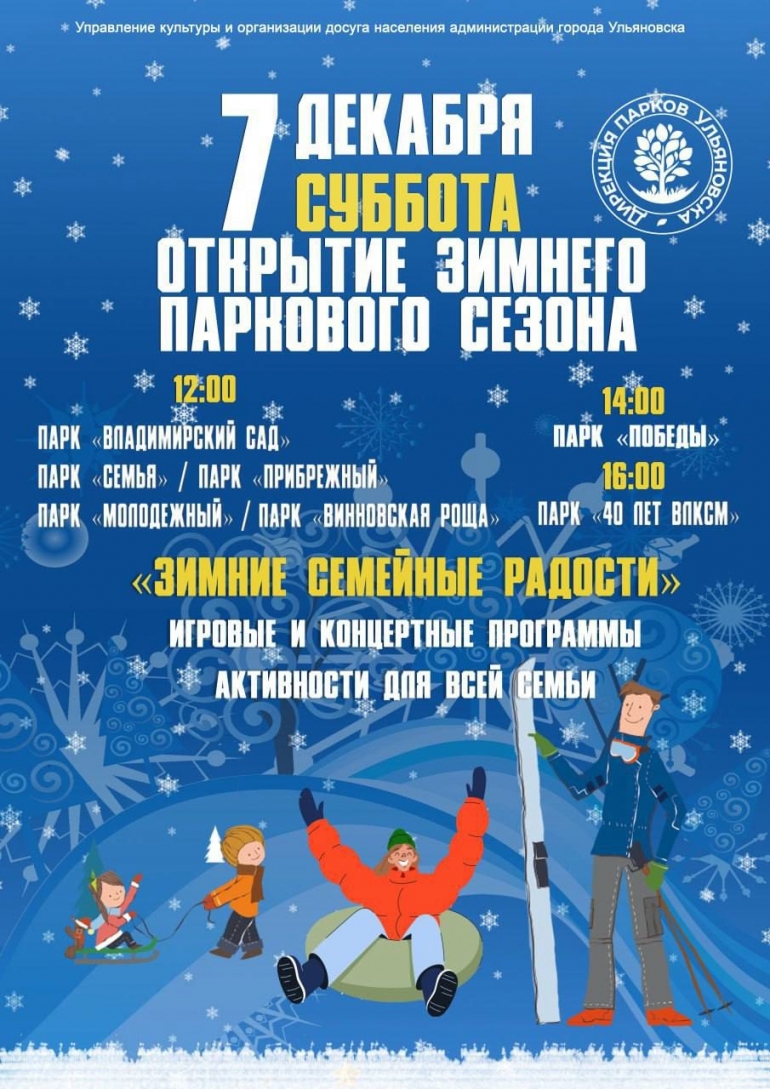 По словам руководителя «Дирекции парков Ульяновска» Александры Дёмочкиной, зимний парковый сезон в этом году открывается под названием «Зимние семейный радости».